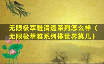 无限极萃雅清透系列怎么样(无限极萃雅系列排世界第几)