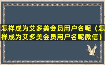 怎样成为艾多美会员用户名呢(怎样成为艾多美会员用户名呢微信)