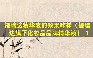 福瑞达精华液的效果咋样(福瑞达旗下化妆品品牌精华液)