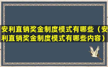 安利直销奖金制度模式有哪些(安利直销奖金制度模式有哪些内容)