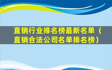 直销行业排名榜最新名单(直销合法公司名单排名榜)
