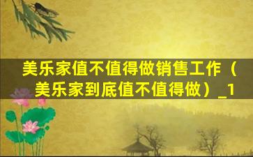 美乐家值不值得做销售工作(美乐家到底值不值得做)