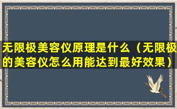 无限极美容仪原理是什么(无限极的美容仪怎么用能达到最好效果)