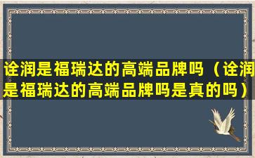 诠润是福瑞达的高端品牌吗(诠润是福瑞达的高端品牌吗是真的吗)