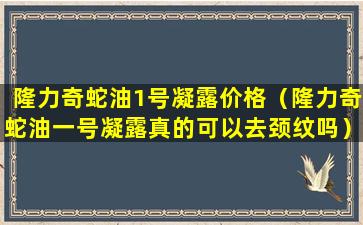 隆力奇蛇油1号凝露价格(隆力奇蛇油一号凝露真的可以去颈纹吗)