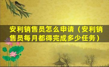安利销售员怎么申请(安利销售员每月都得完成多少任务)