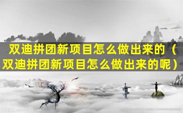 双迪拼团新项目怎么做出来的(双迪拼团新项目怎么做出来的呢)