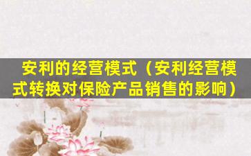 安利的经营模式(安利经营模式转换对保险产品销售的影响)