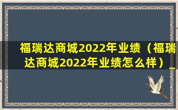 福瑞达商城2022年业绩(福瑞达商城2022年业绩怎么样)