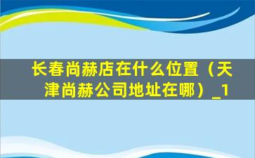 长春尚赫店在什么位置(天津尚赫公司地址在哪)