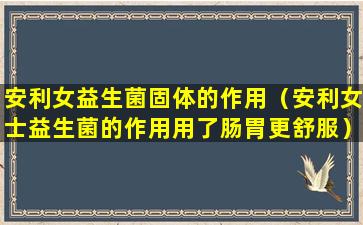 安利女益生菌固体的作用(安利女士益生菌的作用 用了肠胃更舒服)
