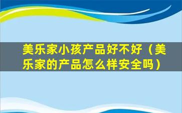 美乐家小孩产品好不好(美乐家的产品怎么样安全吗)