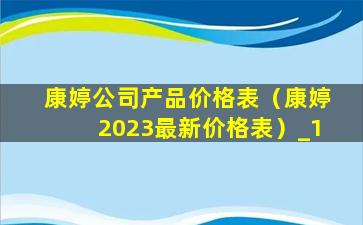康婷公司产品价格表(康婷2023最新价格表)