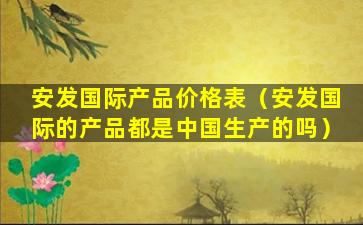 安发国际产品价格表(安发国际的产品都是中国生产的吗)