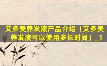 艾多美养发液产品介绍(艾多美养发液 可以使用多长时间)