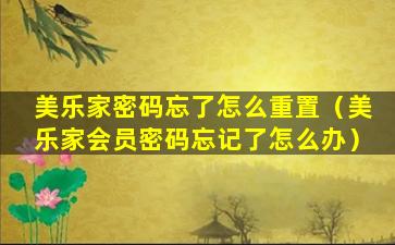 美乐家密码忘了怎么重置(美乐家会员密码忘记了怎么办)