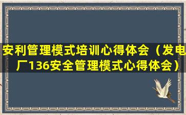 安利管理模式培训心得体会(发电厂136安全管理模式心得体会)