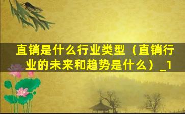 1、直销是什么行业类型