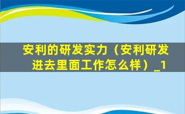 安利的研发实力(安利研发进去里面工作怎么样)