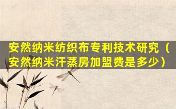 安然纳米纺织布专利技术研究(安然纳米汗蒸房加盟费是多少)