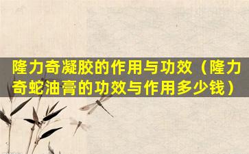 隆力奇凝胶的作用与功效(隆力奇蛇油膏的功效与作用多少钱)