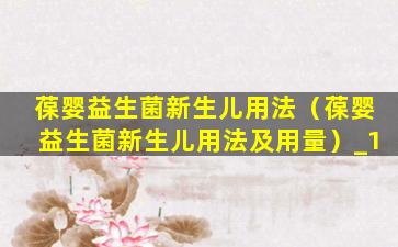葆婴益生菌新生儿用法(葆婴益生菌新生儿用法及用量)