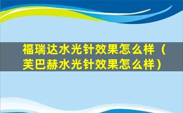 福瑞达水光针效果怎么样(芙巴赫水光针效果怎么样)