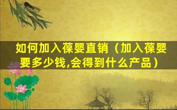 如何加入葆婴直销(加入葆婴要多少钱,会得到什么产品)