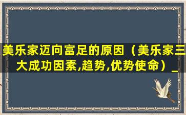 美乐家迈向富足的原因(美乐家三大成功因素,趋势,优势使命)