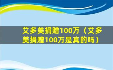 艾多美捐赠100万(艾多美捐赠100万是真的吗)