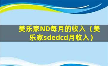 美乐家ND每月的收入(美乐家sd ed cd月收入)