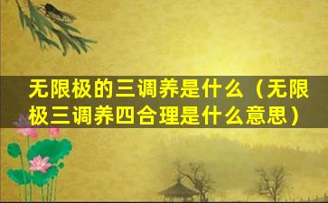 2、无限极三调养四合理是什么意思