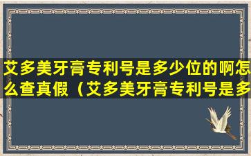 艾多美牙膏专利号是多少位的啊怎么查真假(艾多美牙膏专利号是多少位的啊怎么查真假啊)