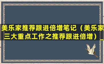美乐家推荐跟进倍增笔记(美乐家三大重点工作之推荐跟进倍增)