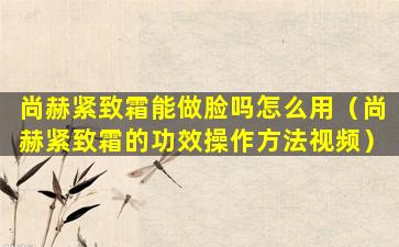 尚赫紧致霜能做脸吗怎么用(尚赫紧致霜的功效操作方法视频)