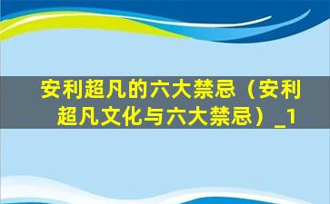 安利超凡的六大禁忌(安利超凡文化与六大禁忌)