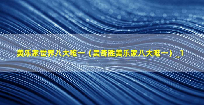 美乐家世界八大唯一(吴奇胜美乐家八大唯一)