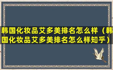 韩国化妆品艾多美排名怎么样(韩国化妆品艾多美排名怎么样知乎)