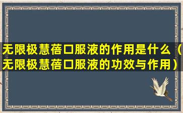 无限极慧蓓口服液的作用是什么(无限极慧蓓口服液的功效与作用)