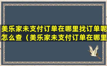 美乐家未支付订单在哪里找订单呢怎么查(美乐家未支付订单在哪里找订单呢怎么查询)