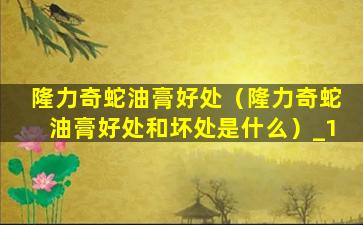 隆力奇蛇油膏好处(隆力奇蛇油膏好处和坏处是什么)