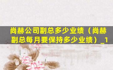 尚赫公司副总多少业绩(尚赫副总每月要保持多少业绩)