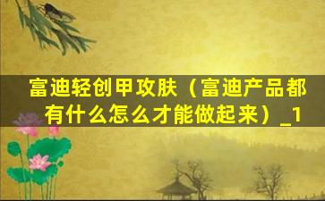富迪轻创甲攻肤(富迪产品都有什么怎么才能做起来)