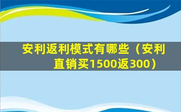 活动详情:在活动期间内,购买安利产品满 1500 元,即可返还 300 元。