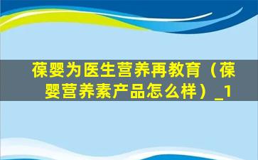 1、葆婴为医生营养再教育