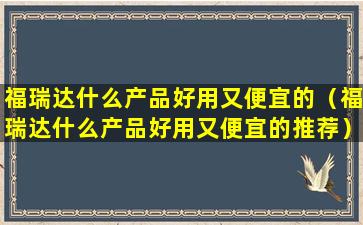 福瑞达什么产品好用又便宜的(福瑞达什么产品好用又便宜的推荐)