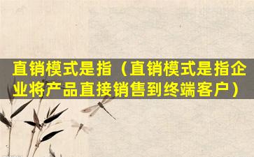 直销模式是指(直销模式是指企业将产品直接销售到终端客户)