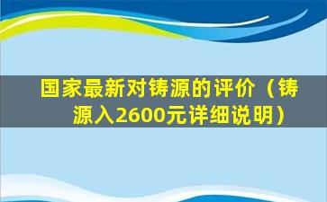 国家最新对铸源的评价(铸源入2600元详细说明)