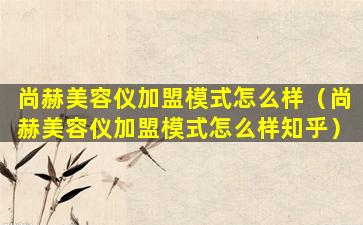 尚赫美容仪加盟模式怎么样(尚赫美容仪加盟模式怎么样知乎)