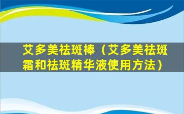 艾多美祛斑棒(艾多美祛斑霜和祛斑精华液使用方法)